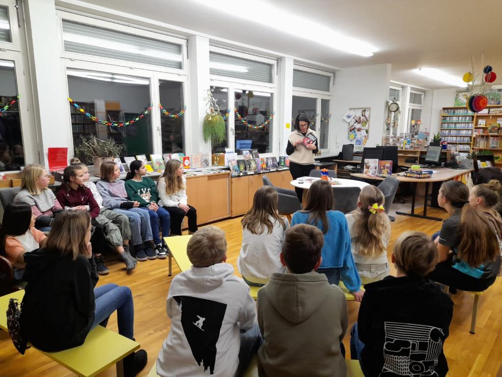 Am Dienstag, den 13. Mai 2025 konnten wir die gebürtige Dornbirnerin Irmgard Kramer in unserer Bücherei begrüßen. Sie hat uns erzählt, wie ein Buch entsteht und uns verschiedene Bücher vorgestellt. DANKE an die sympathische Autorin, der Landesbüchereistelle für die Organisation der Autorenlesung und den begeisterten sehr aufmerksamen Zuhörern der 4a/4b der VS-Schwarzach.